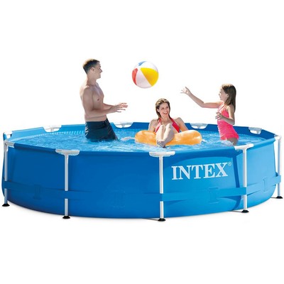 When looking for the ideal metal frame pool, here is a fine option you may try out. Material: high-quality polyethylene. Intex 10' x 30" Metal Frame Above Ground Swimming Pool Set - $30 10' round metal frame swimming pool, includes pump and heat-preserving cover.