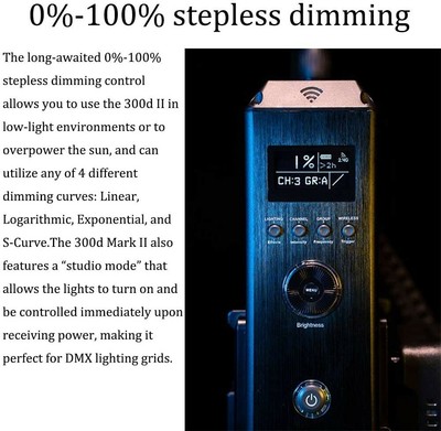 For example, a traditional bi-color light with a CCT range of 3200K-5600K will contain a set of 3200K CCT LEDs and 5600K CCT LEDs. Our ABN is 37609221187. firmware updates, all from your smartphone or Aputure announced the LS 300d II at NAB 2019, and I had a look at the new updated version at the show. An optional 7.5m 5-pin XLR is also available, letting you keep your control box within arms reach while giving you the ability to rig your light anywhere you want, from a menace arm to a tall goalpost rig. The handbrake locking mechanism from the LS 120d Mark II is now on the LS 300d II.