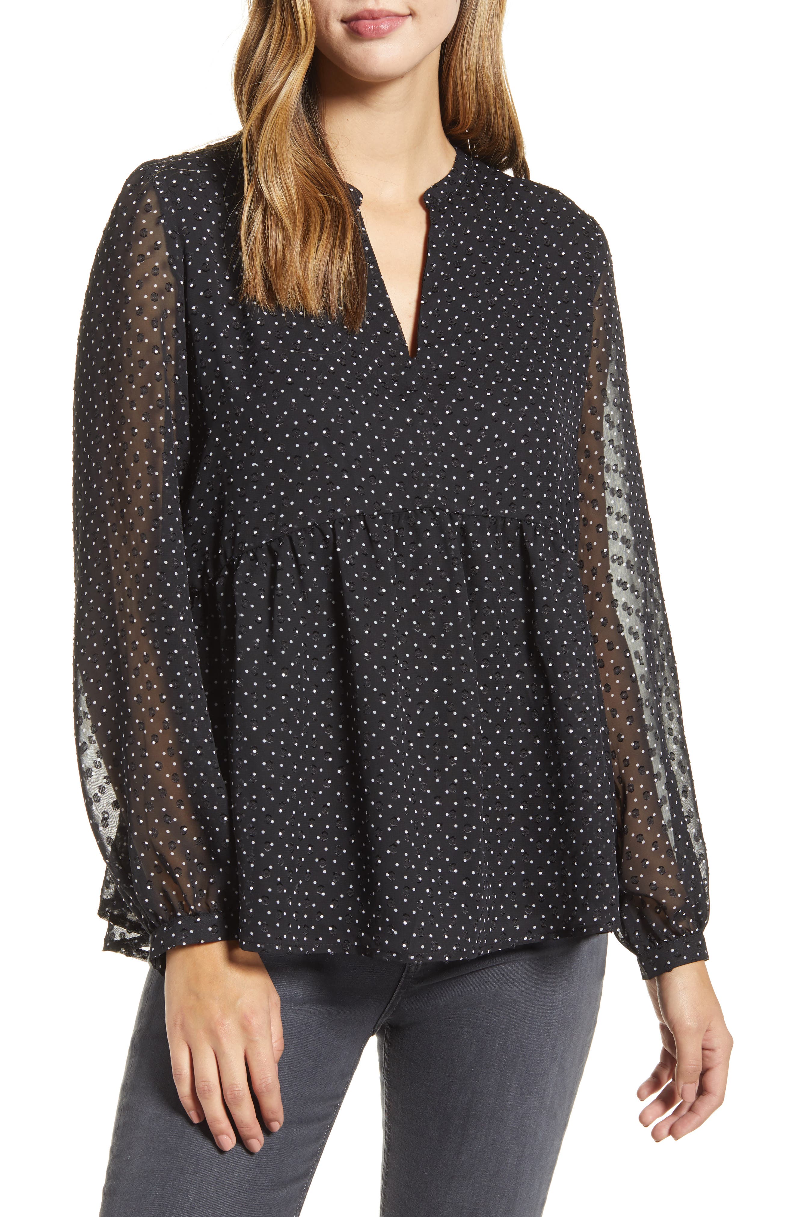 Designed in collaboration with style influencer Ruthie Ridley, this easy-wearing stretch crepe top is cut with a curved hem and a breezy split-neck design. Style Name: Gibsonlook Split Neck Blouse. split ; happy (that)