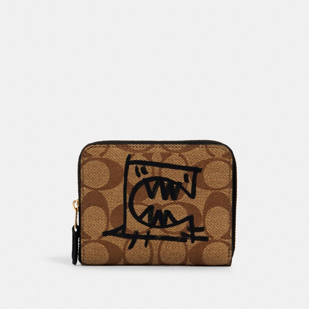 coach signature zip canvas medley bouquet wallet multi brown around gold light