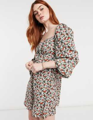 slit ditsy shirred stradivarius ditsy midi sweetheart asos neck floral dress