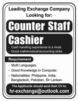 cashier vacancy Please refer to the job advert for further information.  cashier receptionist merojob Please read . Our client one of the largest in bakery & Restaurants in Maldives is looking for the  Graphic Designer cum Social Media Assistants to join their dynamic te . Our client one of the prestigious Luxury Hotels in Seychelles  is looking for Waiter/Waitress to join their elegant team.