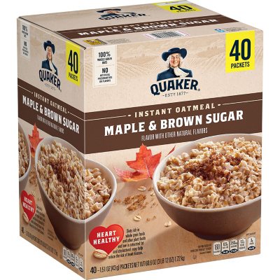 - Empty packet into microwave-safe bowl. Quaker Instant Oatmeal Maple and Brown Sugar 1.69 Oz We think its important to celebrate the classics: thats why weve taken instant quaker oatmeal maple & brown sugar and made it even more convenient.