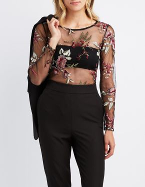Forever 21 | Tops | Floral Embroidered Mesh Bodysuit