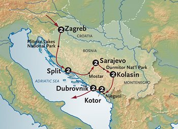 Start and end in Dubrovnik! The Krka flows for 75km from its spectacular source near Knin to the Adriatic which it reaches at Sibenik.