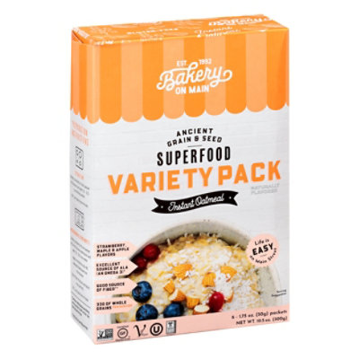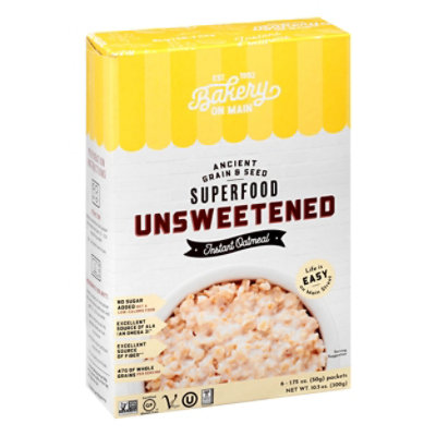 All Categories; Appliances 9 10.5 oz - 6 50g packets. Trans fat free. . multigrain On Main Ancient Grains - 6 Bakery On Main - ShopoTam. Superfood Unsweetened Instant Oatmeal. Bakery on Main Combining a unique blend of certified gluten-free oats with ancient grains quinoa and amaranth, you wont be able to resist the wholesomeness of our unsweetened instant oatmeal! Gluten free. BakeryOnMain.com. On Main About this item .