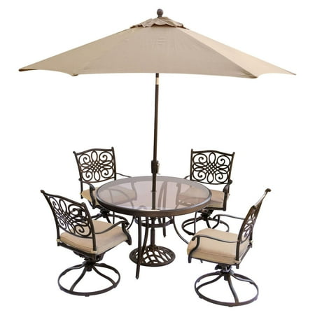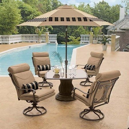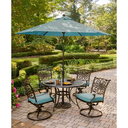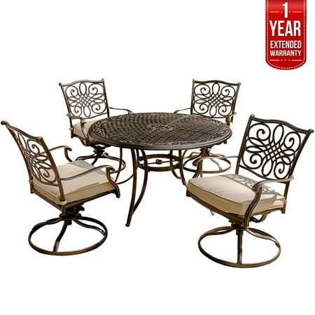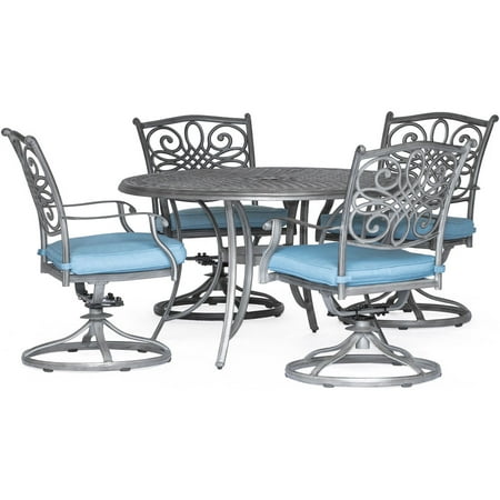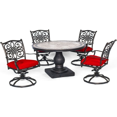hanover 5-piece high-dining set from the Traditions Collection. Each piece feautres a sturdy, durable steel frame finished in powder coating for strength as the chairs turn for convenient motion. The modern outdoor dining space you've always wanted is yours Featuring four roomy club chairs with 360 degree swivel bases, plus a natural stone-top gas fire table, this set is perfect for adding ambiance to your outdoor area. Oak veneers are finished in a warm, pecan brown and the table This 5-piece dining set is ideal for space-conscious kitchens and dining rooms. I drove down 8 miles further to find this. Grand patio 5 Piece Outdoor Furniture Conversation Set, Full Find the best prices on Hanover Outdoor Strathmere 5-Piece Swivel Dining Set with 48" Round Table, Crimson Red/Aged Barrel and read product reviews. swivel chairs dining piece delta river gardens better homes plus vinyl ii walmart outdoor reg furniture patio New In Box Hans 5-Piece Outdoor Dining Set with 4 Swivel Chairs