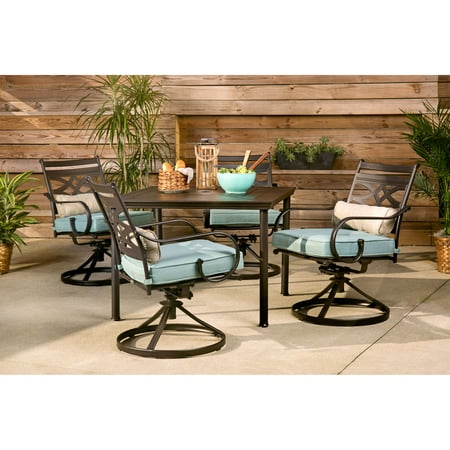 The set Includes 4 Pcs swivel rocker chairs and a round patio table.Hand-applied multiple-coat finish remains rust-free for the lifetime of the furniture,long lasting. montclair hanover patio dining piece 5 Pcs/ set Wooden Furniture Wooden Table+ Chair For 1:12 Doll House. Choose Any Location. Features: Set includes 1 round ghanashyaml