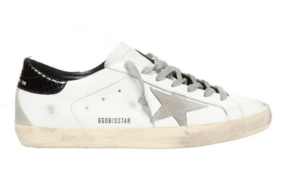 Mens Black and White Leather Stardan Sneaker. $495.00. 445.30 356.24 Shop now. Super-Star sneakers with black snake-print leather star and blue leather heel tab. Francy Golden Goose . $604. Sign in Join.