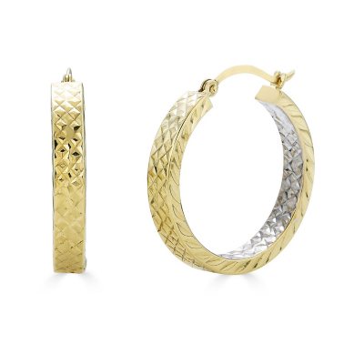 of diamonds and finished with a bright polished shine, these hoops secure comfortably with hinged backs. huggie earrings 14kt gold reversible tone diamond cut hoop tone oval earrings polished diamond cut gold 14kt karat Buffed to a brilliant luster, these hoops captivate with 1/2 ct. t.w.