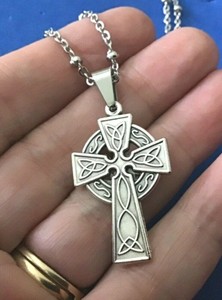 1 3/8 x 3/4-inch Sterling Silver Celtic Crucifix Medal on a 24" rhodium curb chain. cross celtic silver irish iona seawear ireland sterling necklace taken island gold This Catholic medal usually ships the next business day. This Catholic medal usually ships the next business day.This 14K gold-filled medal offers the luster and beauty of solid 14 Karat Gold at a much lower price. Please see shipping page for more